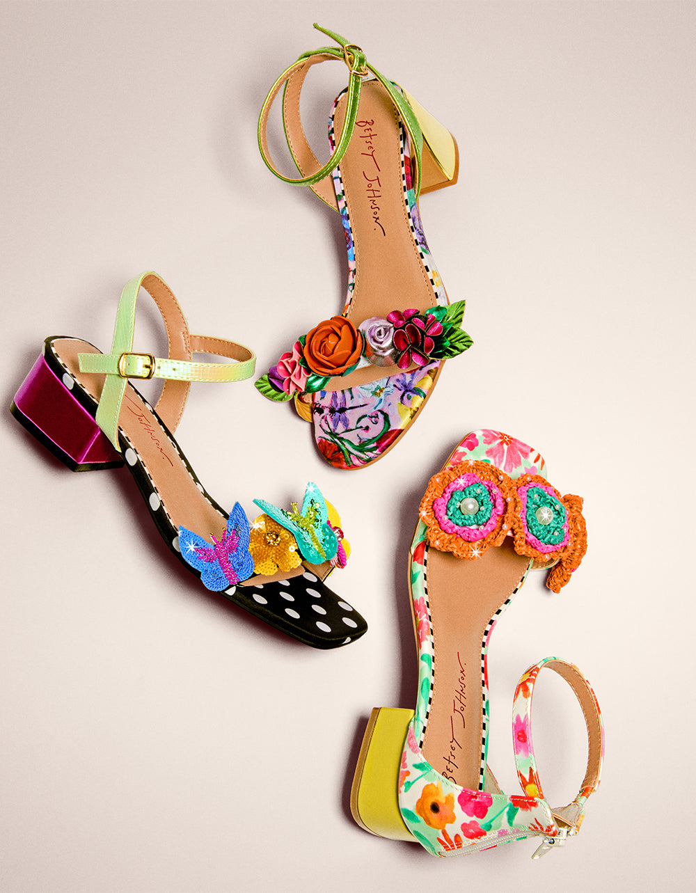 DARCEE is Betsey Johnson’s new butterfly block sandal! The cupped heel and padded footbed make you feel secure with each step.