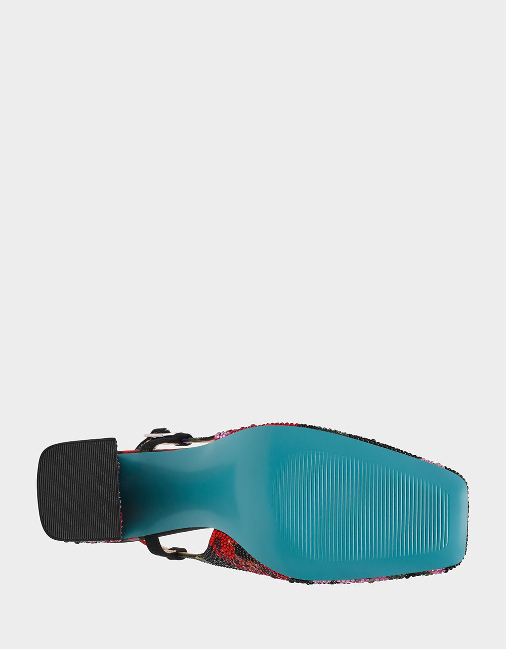 Get ready to pounce on style with the ELIAS! These slingback feature a fierce floral print design. perfect for adding some edge to your outfit. The square-toe and block heel provide comfort while making a statement.?