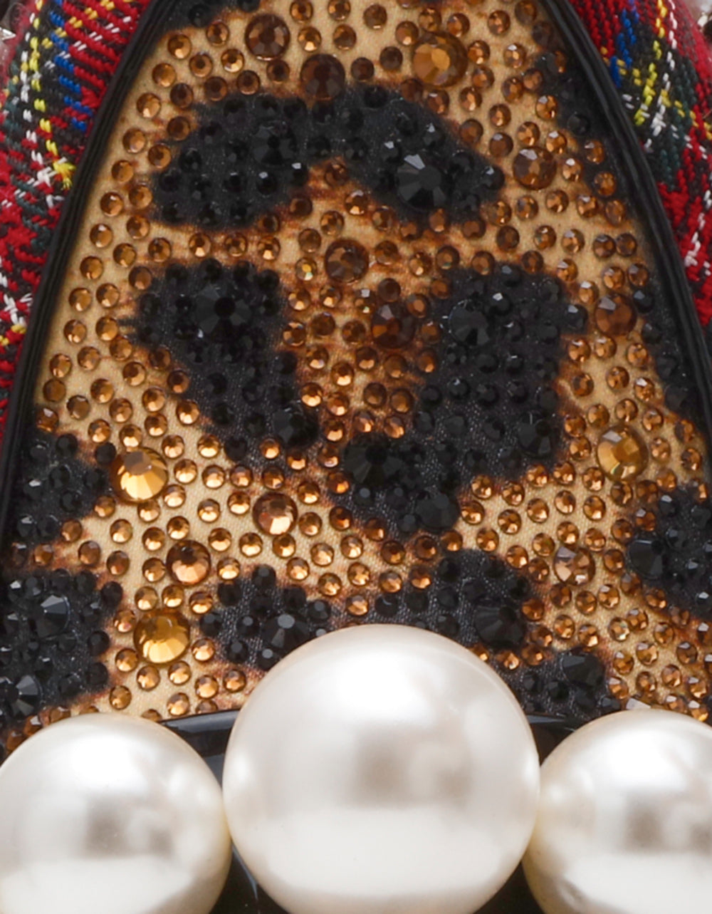 Betsey Johnson’s HARLOE is a escape from basic! The oversized pearl ornament sits atop funky and fun material.