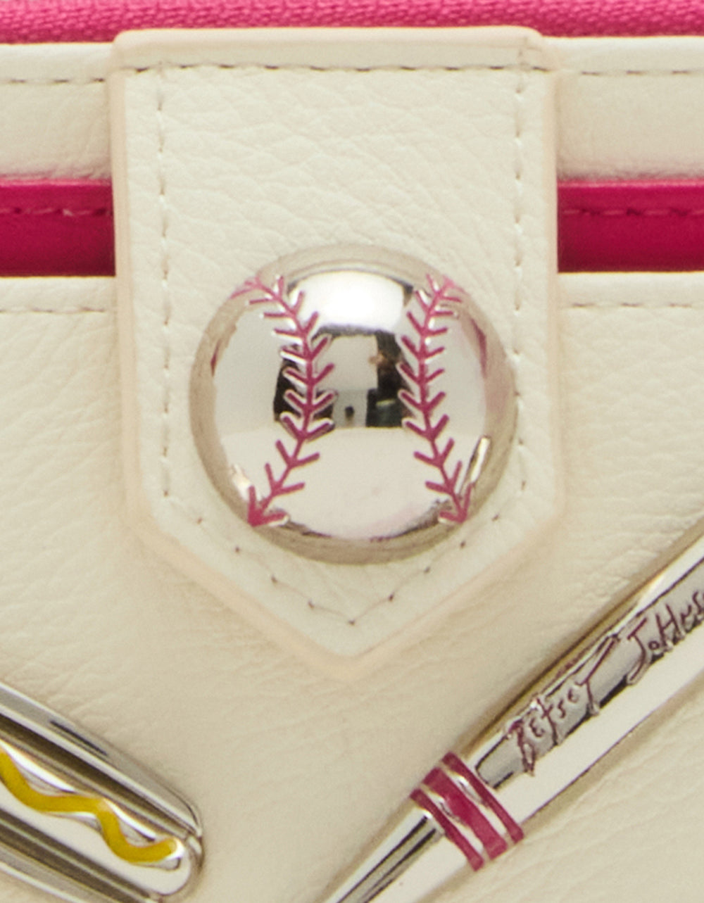 Score a home run with the HIT ME UP BIFOLD ! Its 3D baseball-themed charms show off your love for baseball while keeping you organized with 5 card slots. ID window. and a zipper compartment. This bifold wallet is the perfect accessory for any baseball fan looking to make a playful statement.