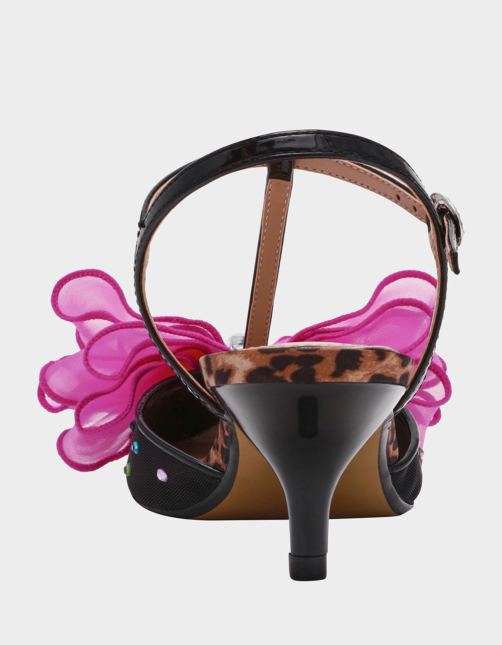 A trendy T-strap with an over-the-top tulle bow makes Betsey Johnson’s new LILLYAN kitten pump a show stopper! With a kitten heel and secure ankle strap. you’ll be wearing this unique heel all day long.