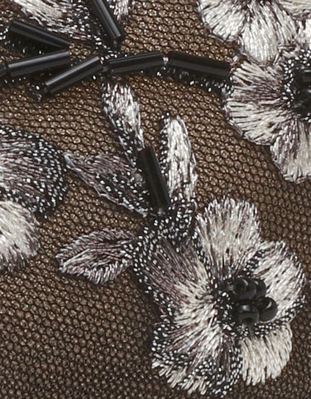 - Mesh textile upper material with beaded embellishments