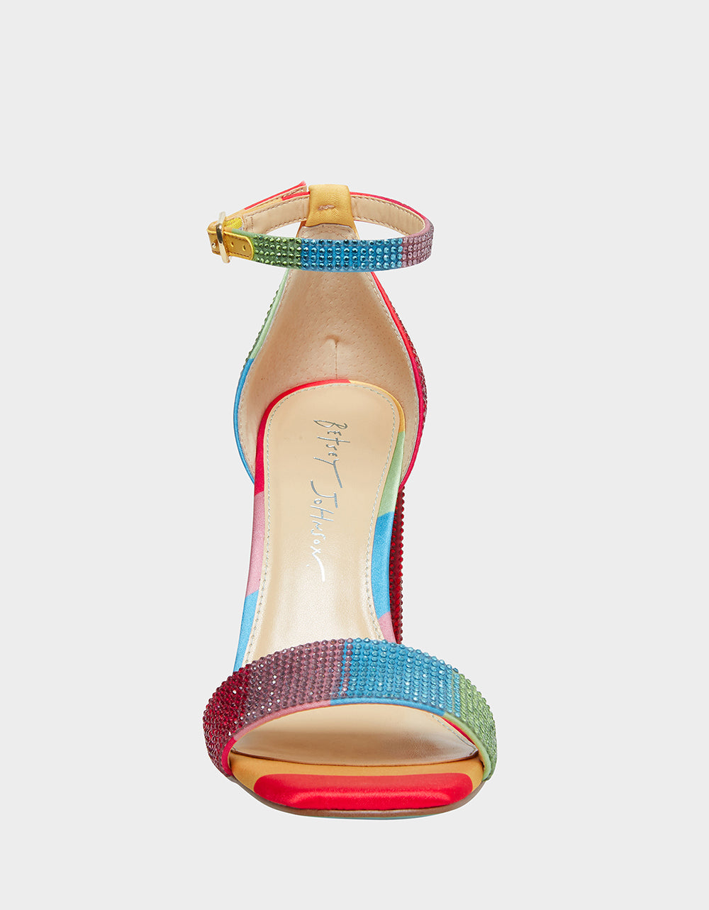 Get ready to make a statement when you’re wearing the SB-RINA. This sandal features an open toe. and a sky-high heel entirely decked out in flashy crystals.