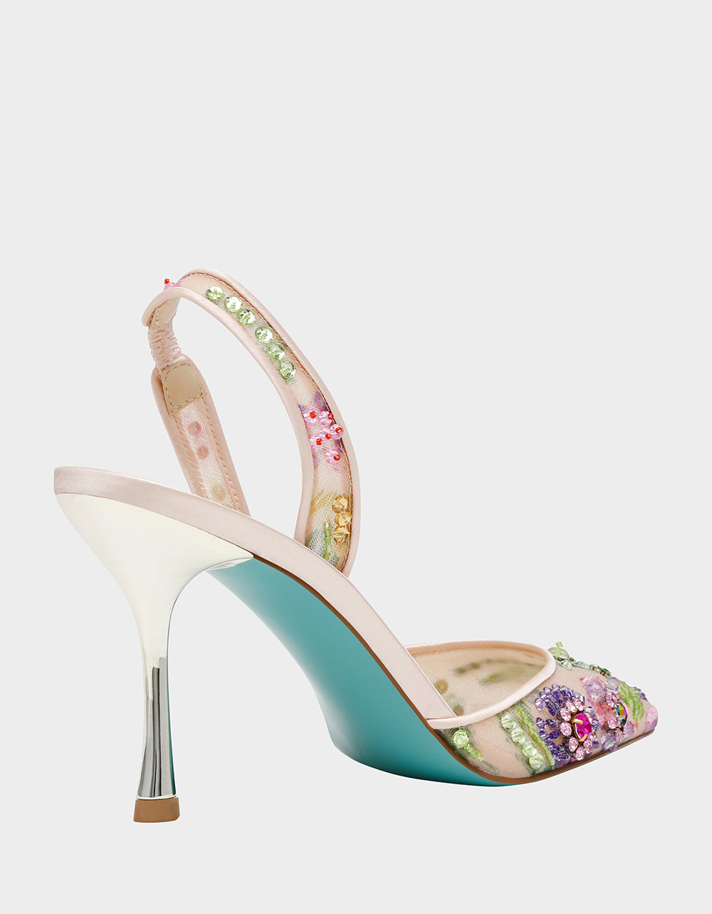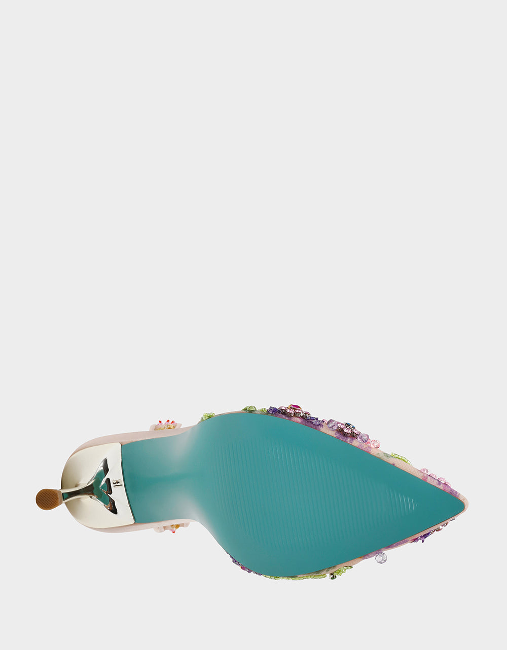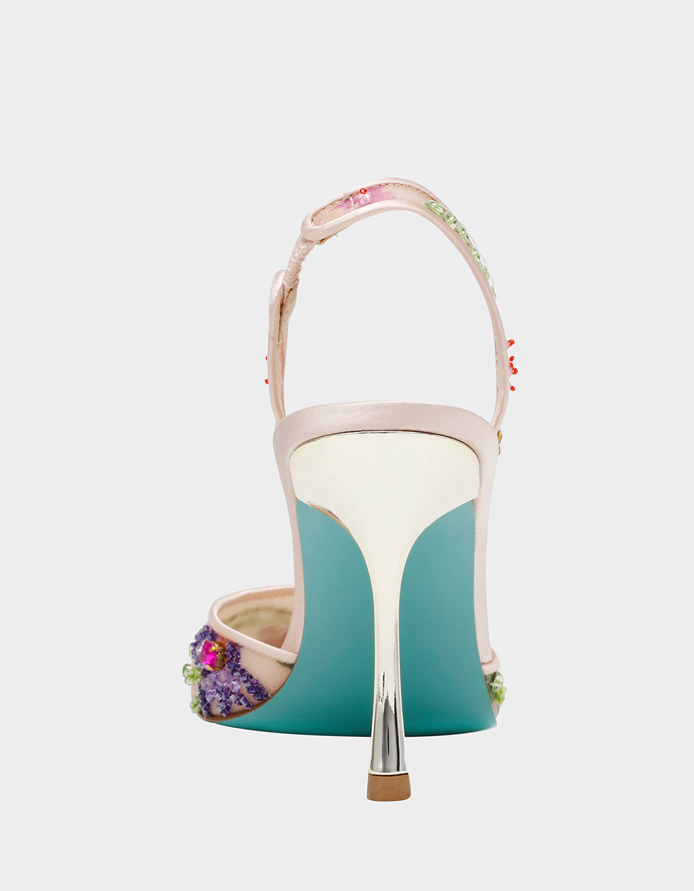 Sophisticated and chic. Betsey Johnson’s new VELMA is encrusted with jewels and beading! A rich design is made wearable with a delicate sling back strap and padded footbed.